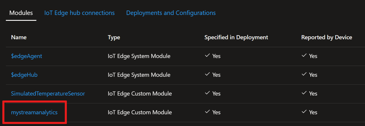 After your Stream Analytics addition finishes deployment, confirm that two new modules appear on your Set modules page.