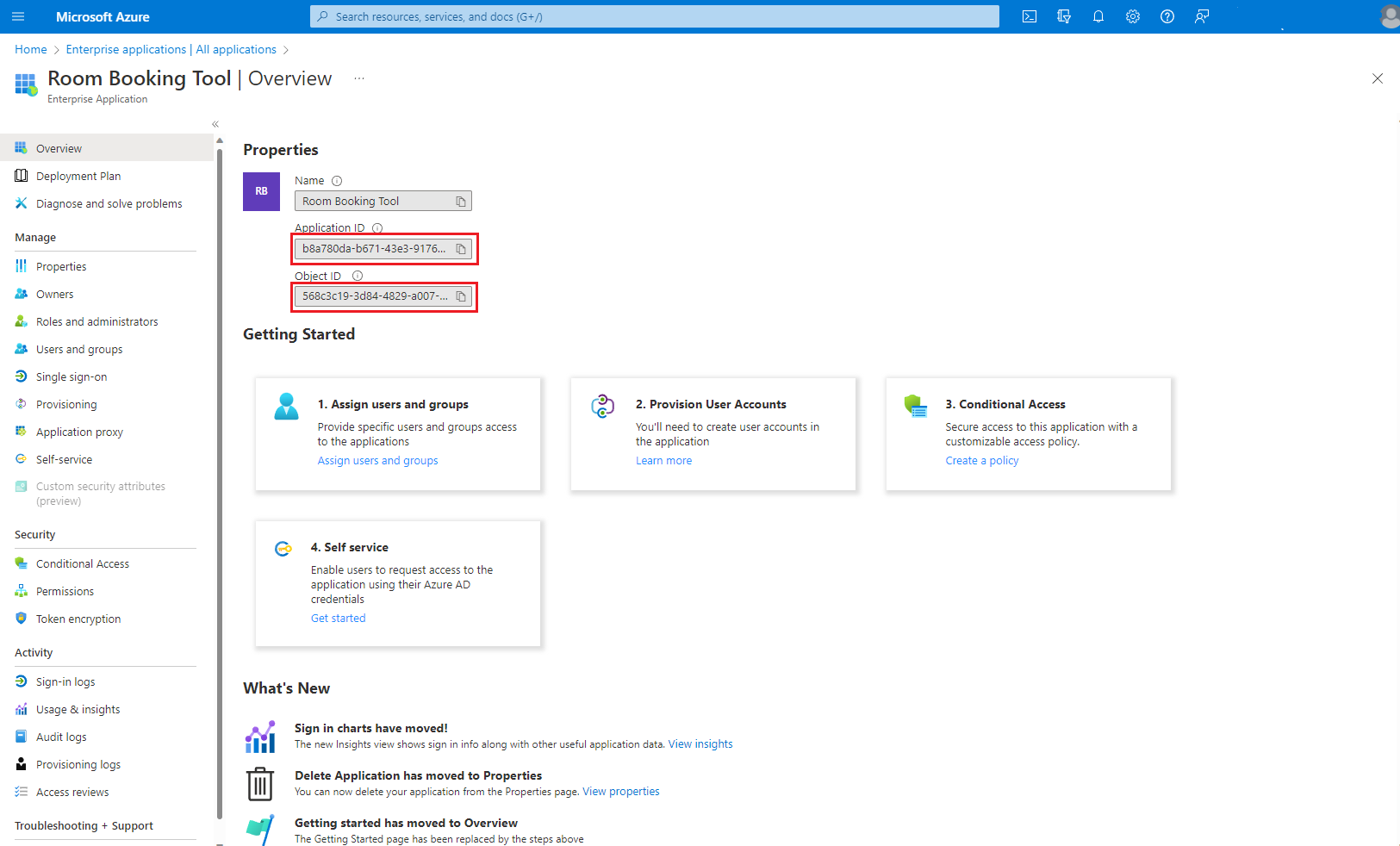 The following screenshot will help you find these IDs in Microsoft Entra ID: