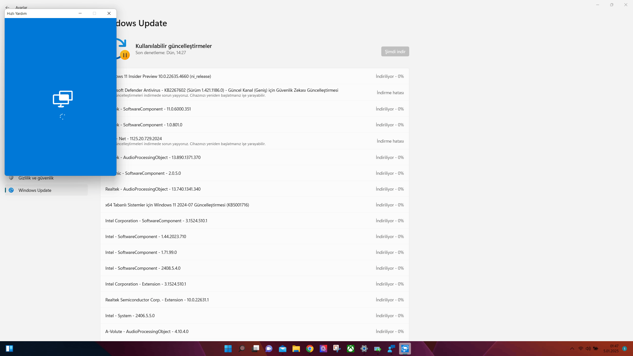 Your other friends who were going to help me couldn't help me because the quick help program gave an error. Because they had to connect to my computer remotely. What other options can we use to solve this situation? Because I can't use any of the features of Microsoft. Windows 11 does not update in any way.