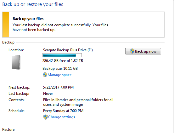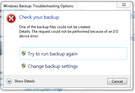 If that didn't resolve the issue, we suggest you run the Checkdsk.exe tool on the drives that you wanted to be backed up, and on the backup location.