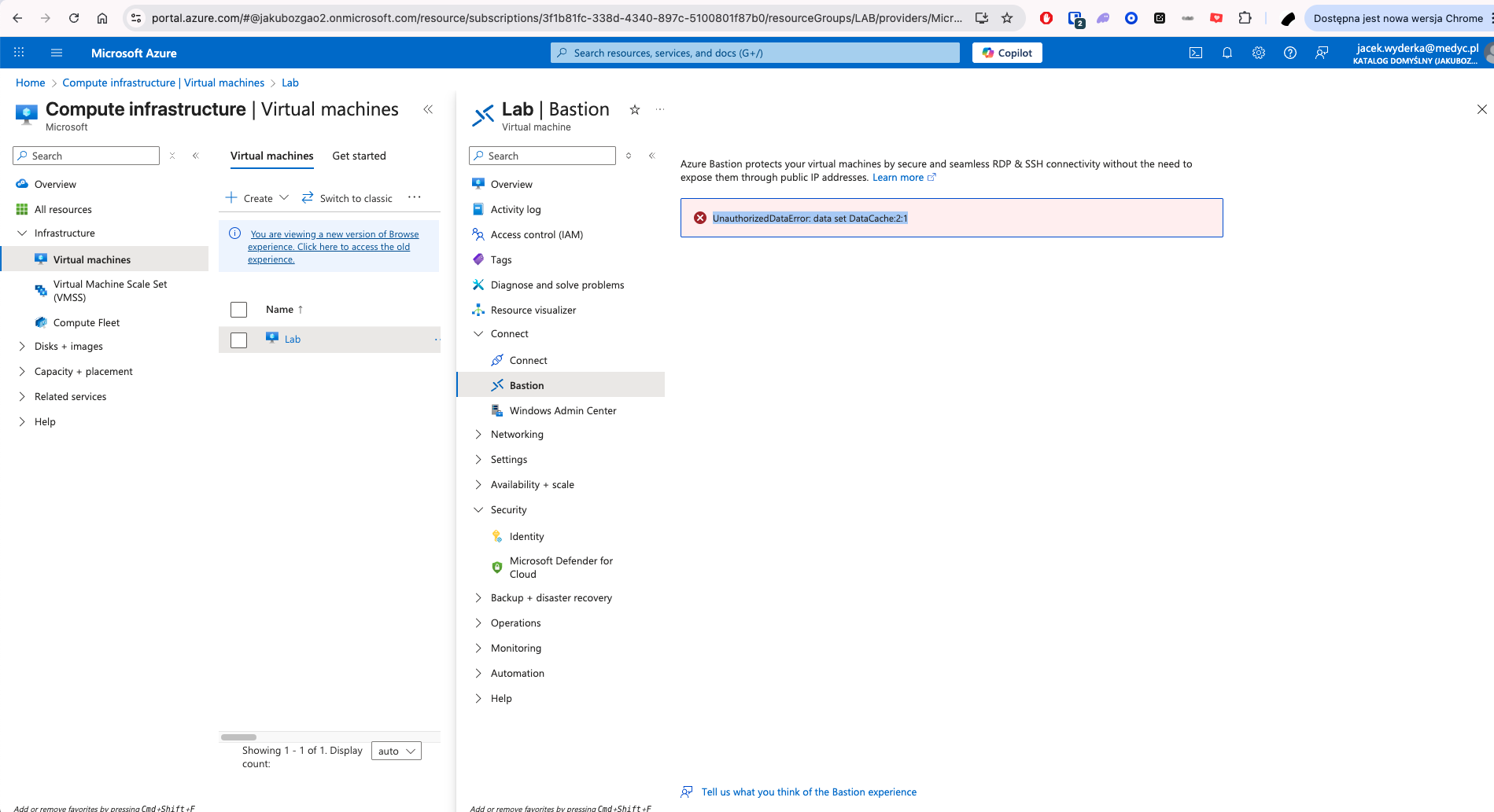 We understand that your user is experiencing an access issue when trying to connect to Bastion.