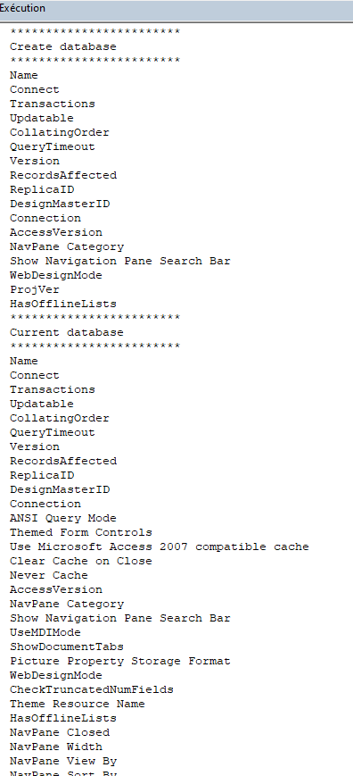 To solve this problem, I added the missing properties used to my database created in VBA from the <Append> method of the properties.