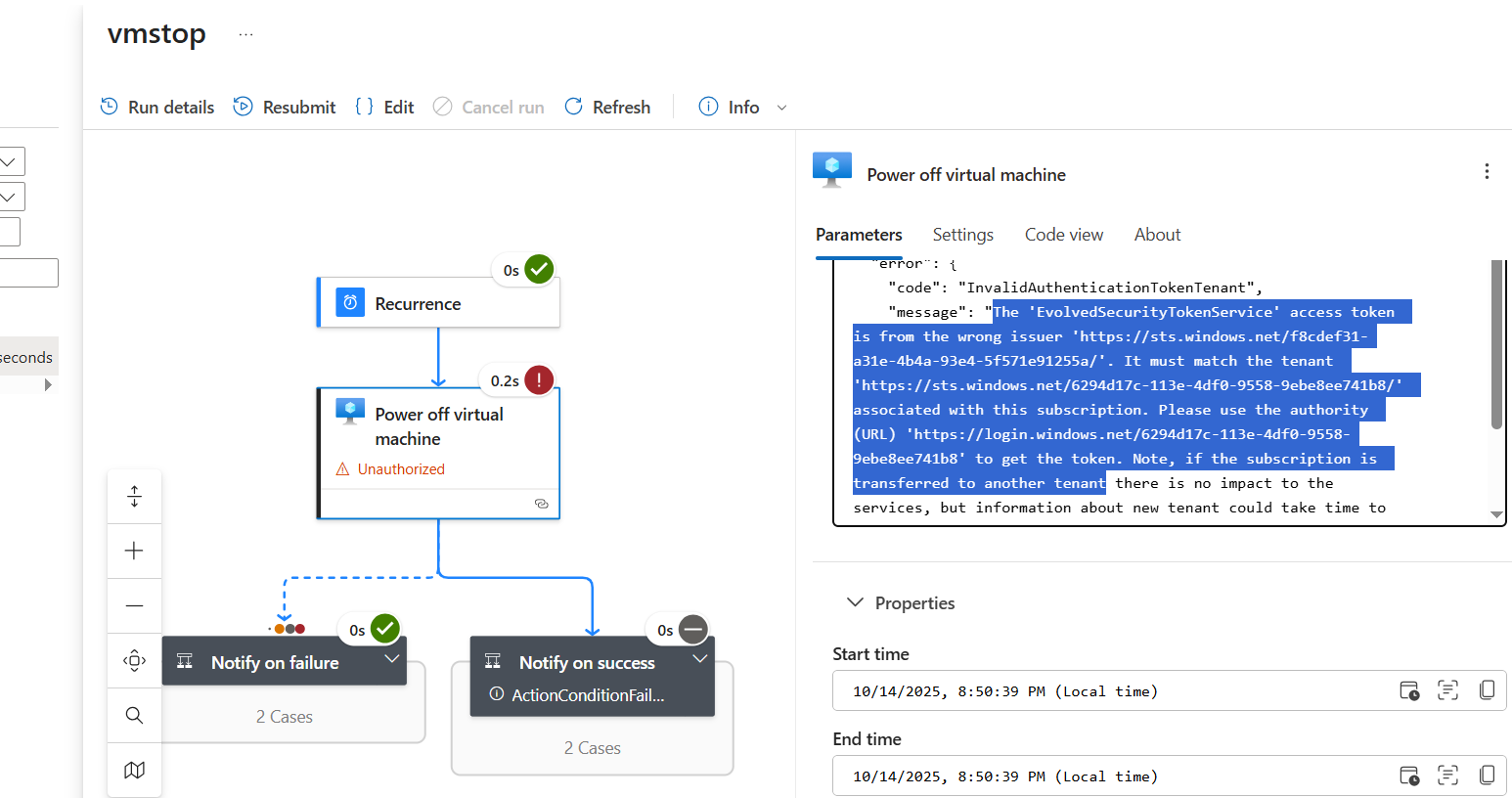 - Make sure your automation resource (Logic App or Automation Account) is in the same directory or granted cross-tenant permissions.