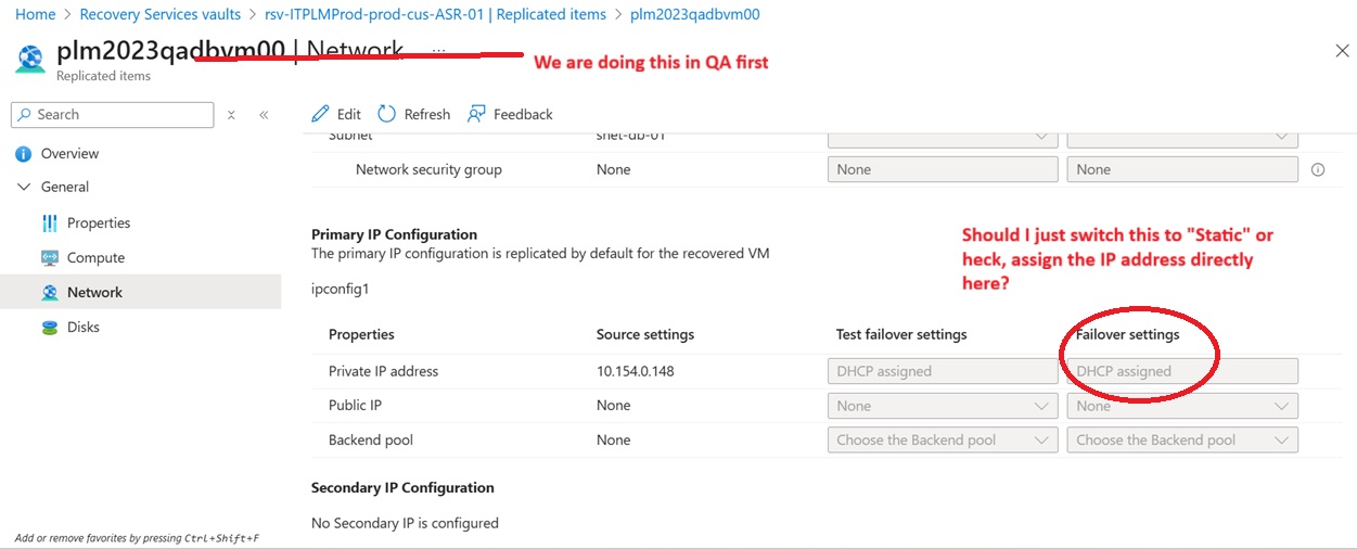 - Perform the Failover: Once everything is set and you have verified the configurations, follow the failover process as detailed in the Azure documentation. Azure Site Recovery will attempt to allocate the IP addresses as per the configurations you set.