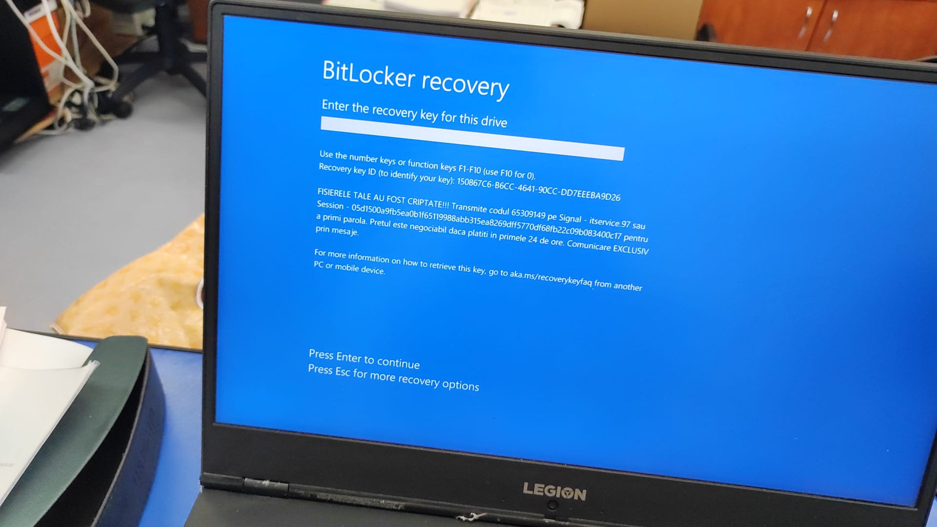 Are you able to find the Bitlocker Recovery Key on any account that may have been used or linked to the laptop?