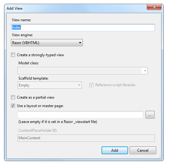 The MvcMovie\Views\HelloWorld folder and the MvcMovie\Views\HelloWorld\Index.vbhtml file are created. You can see them in Solution Explorer: