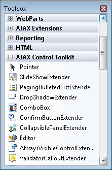 The easiest way to use the AJAX Control Toolkit is to add the toolkit to your Visual Studio/Visual Web Developer toolbox (see Figure 3). That way, you can simply drag a toolkit control onto a page when you want to use it.