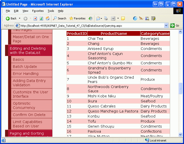Figure 15: The GridView Shows Each Product s ID, Name, and Associated Category Name (Click to view full-size image)