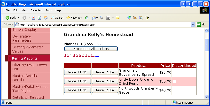 Figure 20: The GridView Includes Price +10% and Price -10% Buttons (Click to view full-size image)