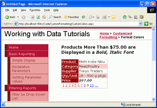 Then, in the DataBound event handler, set the cell's CssClass property to ExpensivePriceEmphasis. The following code shows the DataBound event handler in its entirety:
