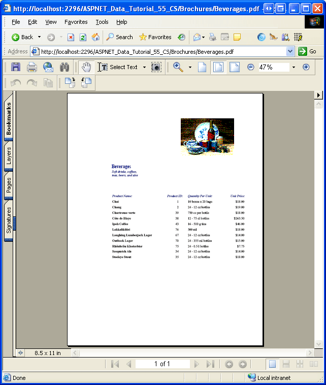 With this page created, a particular category s picture can be viewed by visiting DisplayCategoryPicture.aspx?CategoryID=categoryID. Figure 11 shows the Beverages category s picture, which can be viewed from DisplayCategoryPicture.aspx?CategoryID=1.