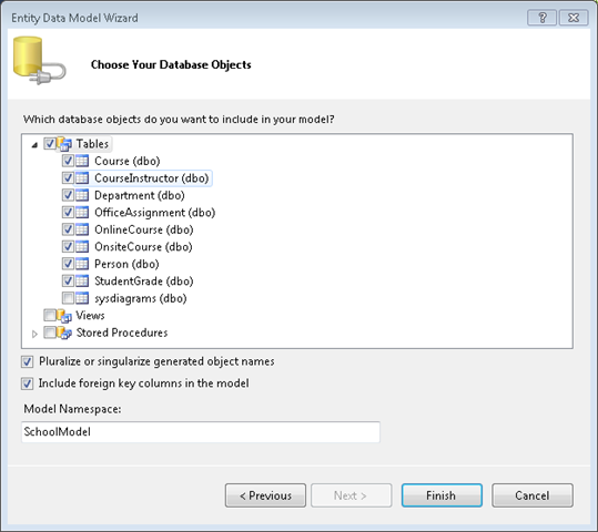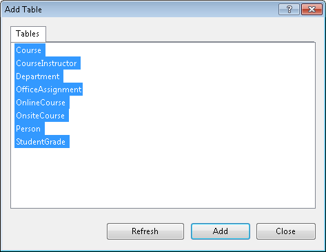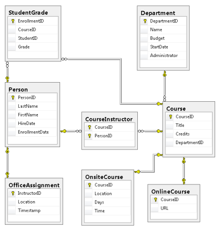 If you download the School.mdf file that goes with this tutorial, you can view the database diagram by double-clicking SchoolDiagram under Database Diagrams in Server Explorer.