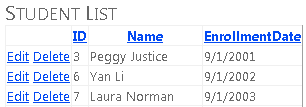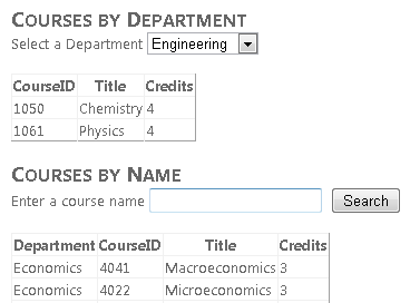 Users can view and update student, course, and instructor information. A few of the screens you'll create are shown below.
