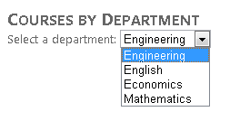In the following steps you'll databind a DropDownList control to an entity set using an EntityDataSource control. In this part of the tutorial, you won't do much with this list. In subsequent parts, though, you'll use the list to let users select a department to display courses associated with the department.
