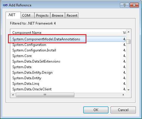 In Solution Explorer, right-click the ContosoUniversity project, select Add Reference, and add a reference to System.ComponentModel.DataAnnotations.