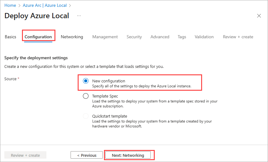 - New configuration - Specify all of the settings to deploy this system. In this example, we choose this option.
