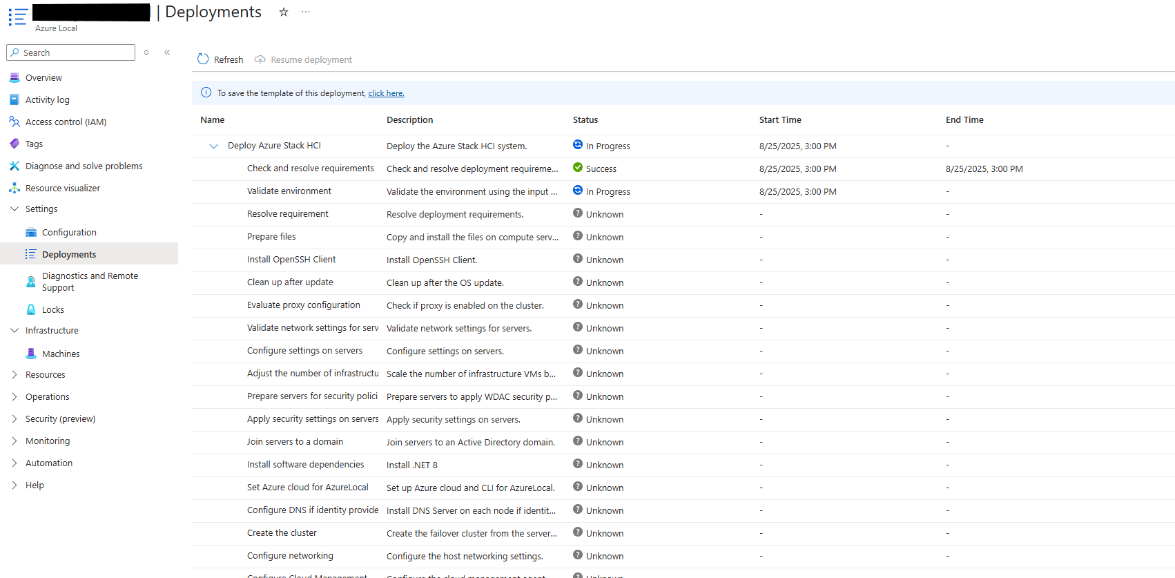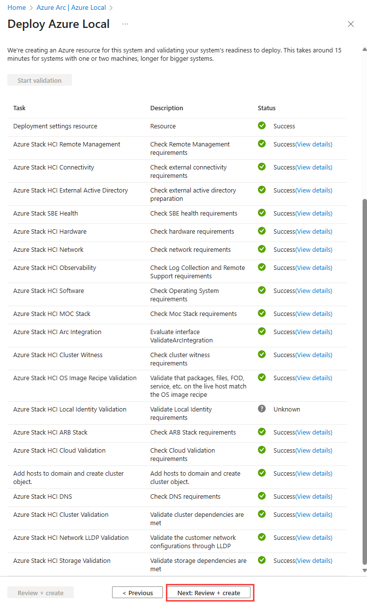 Select Start validation. Validation typically takes about 15 minutes to deploy one to two machines and longer for bigger deployments. Monitor the validation progress.