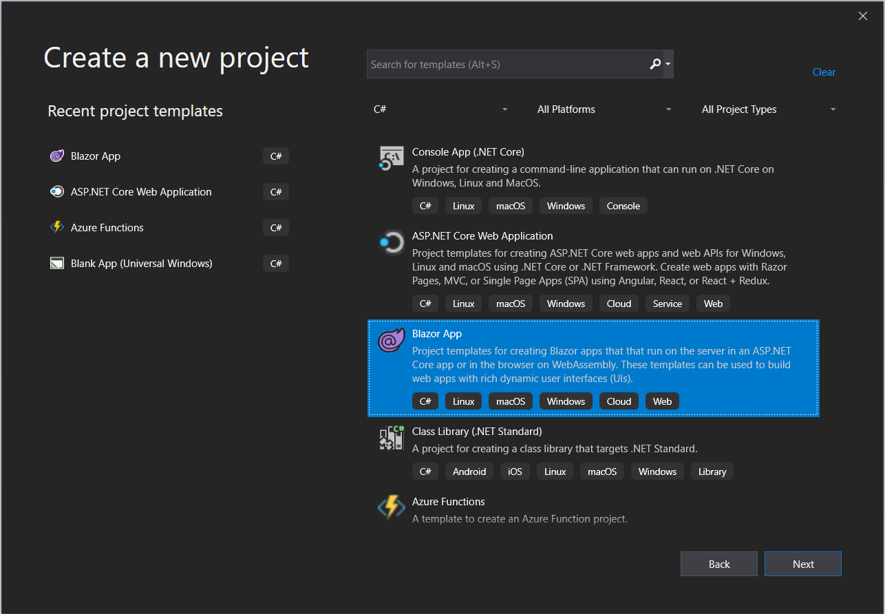 Select Blazor App.
