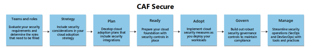 The Cloud Adoption Framework for Azure Secure methodology provides a structured approach for securing your Azure cloud estate. This overview introduces security guidance that applies across every methodology phase of the Cloud Adoption Framework. Security spans strategy, planning, readiness, adoption, governance, and operations; gaps in any phase weaken overall posture. You should apply the Secure methodology end to end so every phase decision reinforces protection, detection, and resilience.