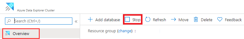 To stop the cluster, at the top of the Overview tab, select Stop.