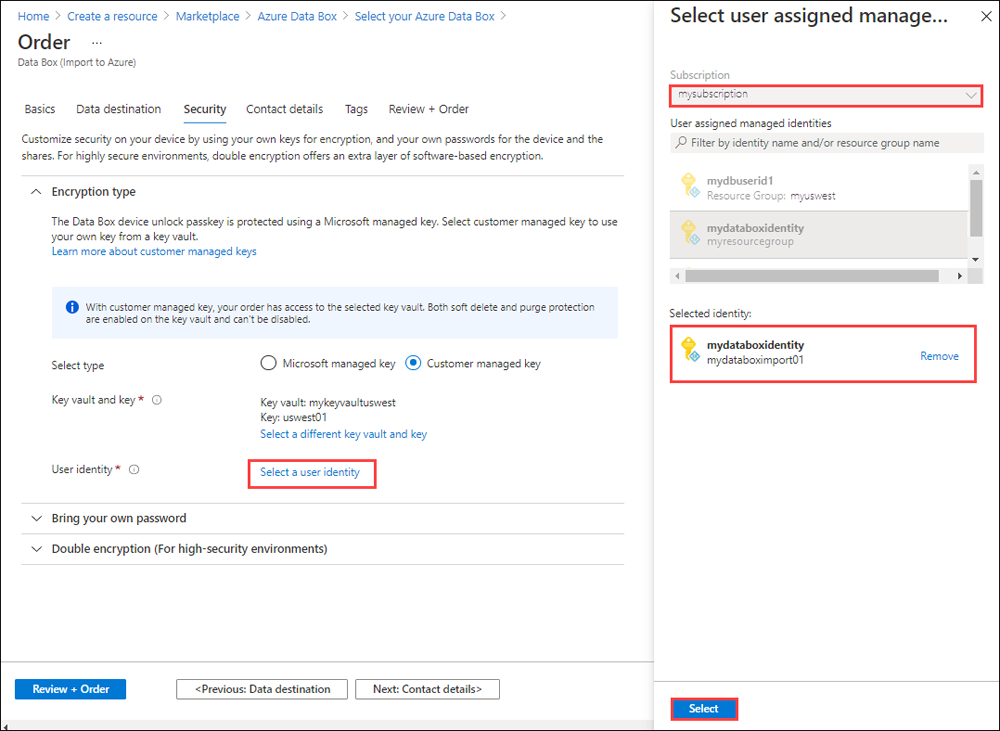 The subscription is linked to your billing account.Resource group Select the resource group you want to use to order a Data Box.