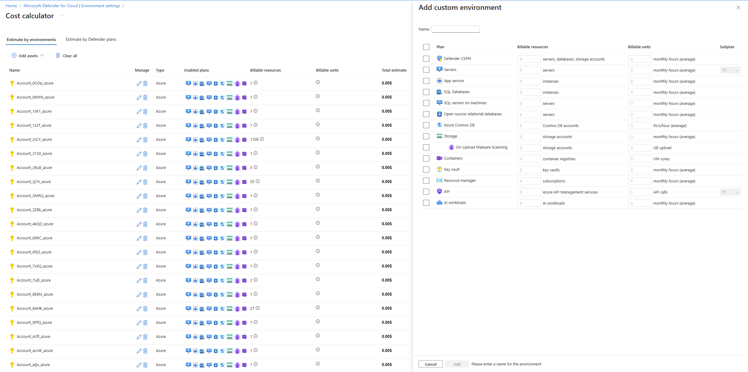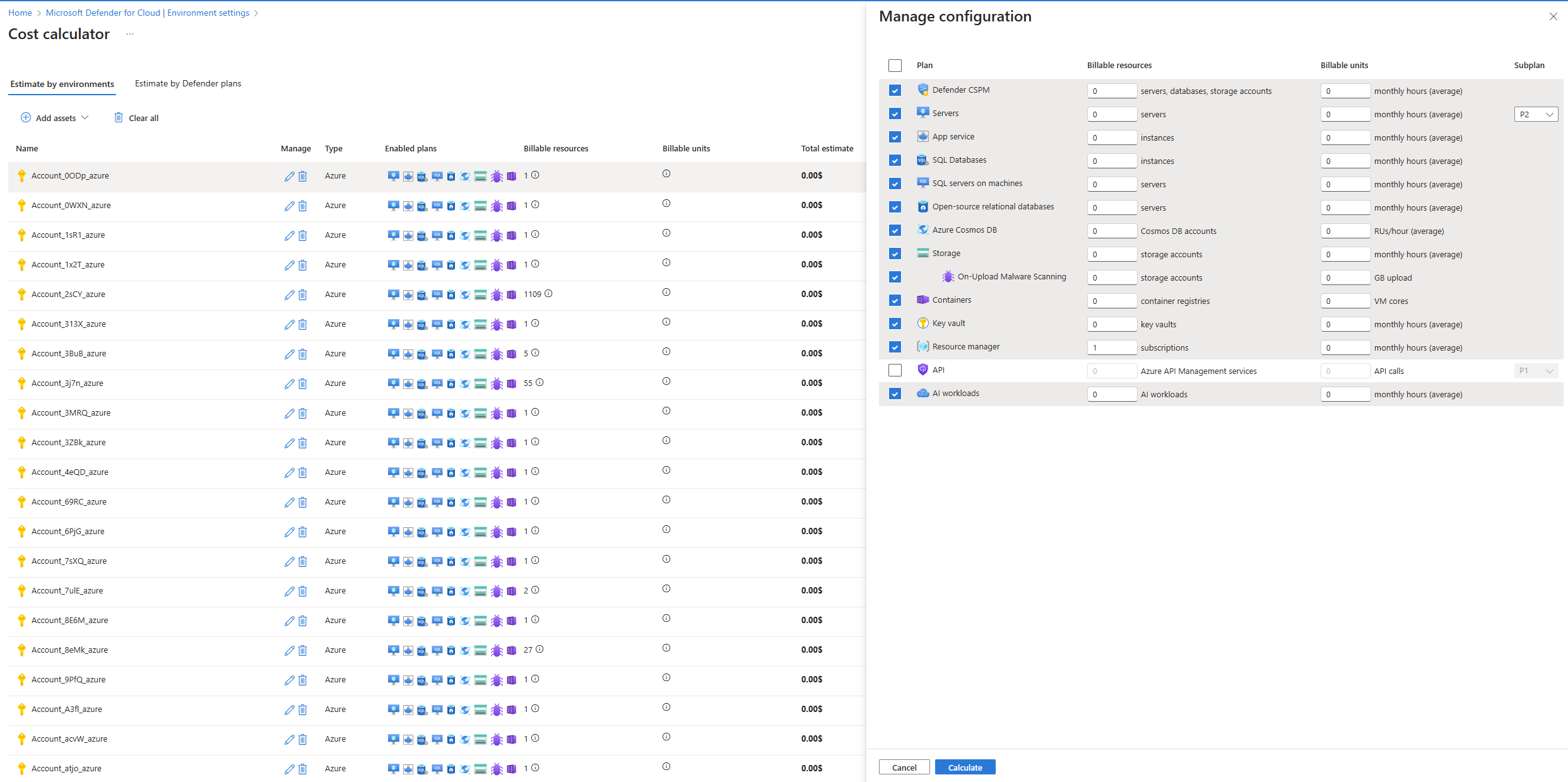 Select from the list of Azure environments already onboarded to Defender for Cloud to include in the cost calculation.