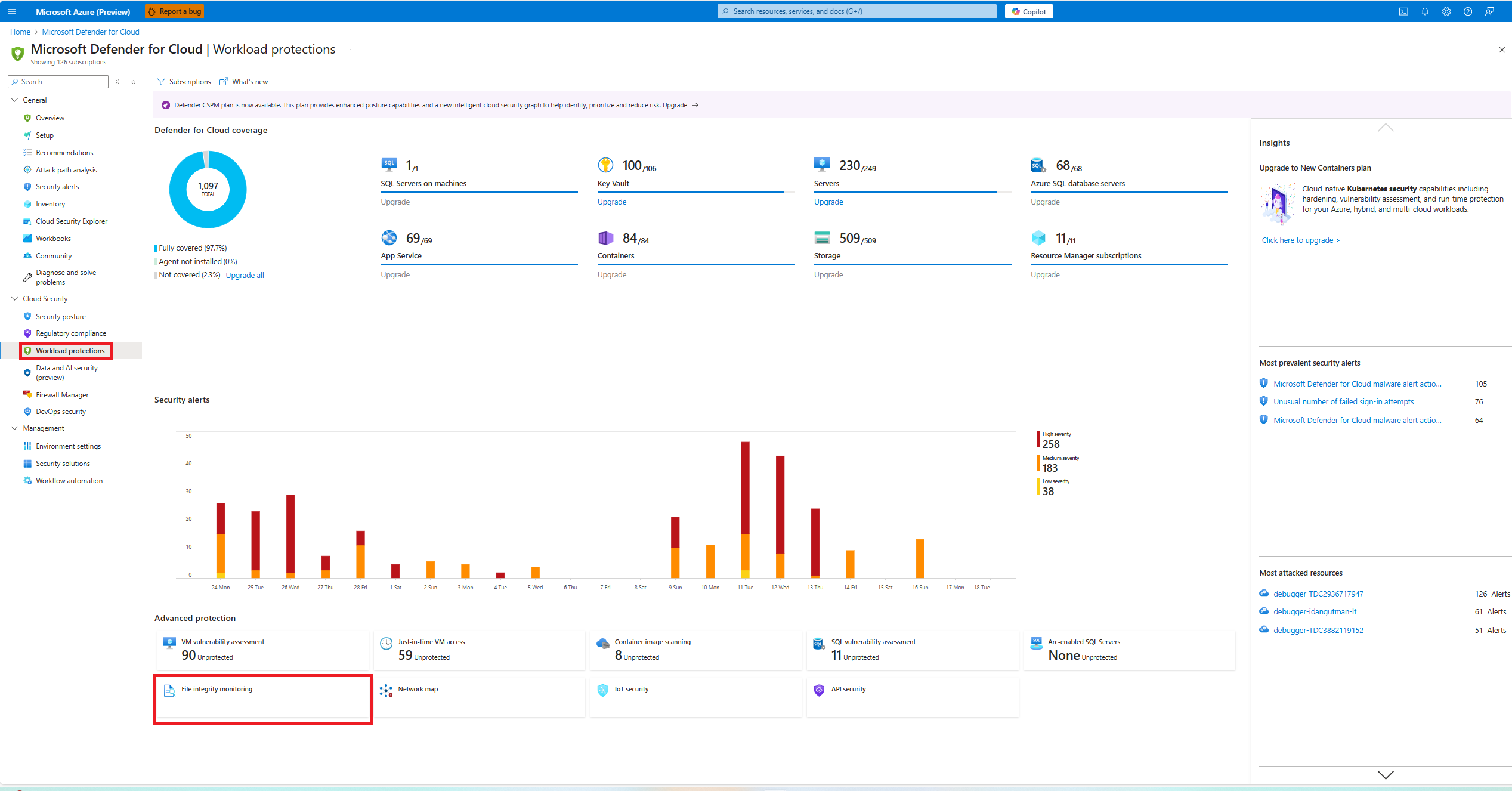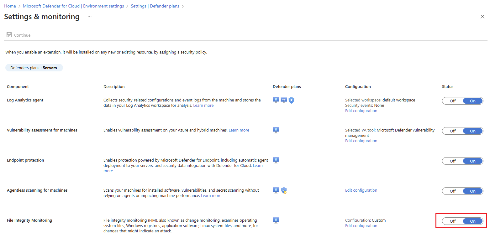 File Integrity Monitoring isn't enabled by default. You can enable it in the Microsoft Defender for Cloud portal.