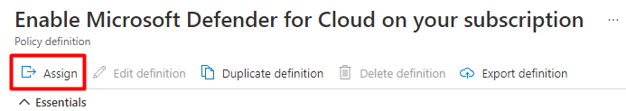 Enable Microsoft Defender for Cloud on your subscription.Select Assign and ensure you set the scope to the MG level.