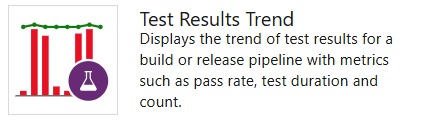 A configurable tile that displays the trend of test results for the selected build or release pipeline. The widget helps you visualize the test trends over a period of time. The widget surfaces patterns about test failures, test duration, and others.