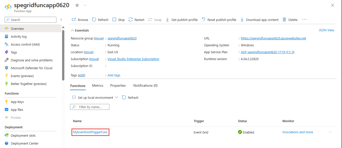 You triggered the event, and Event Grid sent the message to the endpoint that you configured when subscribing. Now you can check whether the function received it.