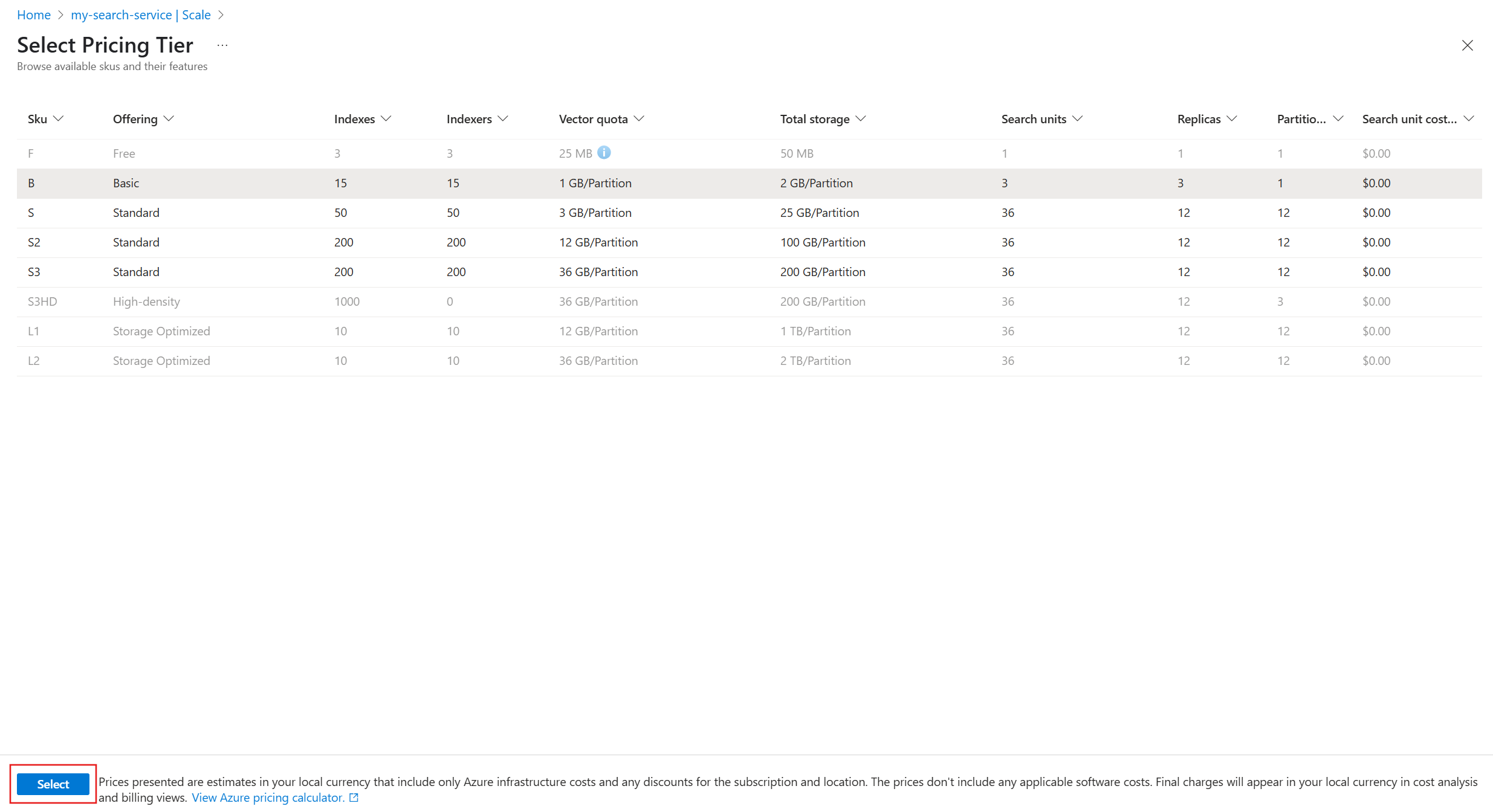 Switching to a higher pricing tier also increases the cost of running your search service. For more information, see the pricing page.