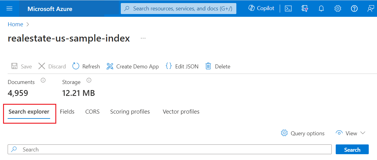 Alternatively, select the Search explorer tab on the index page.