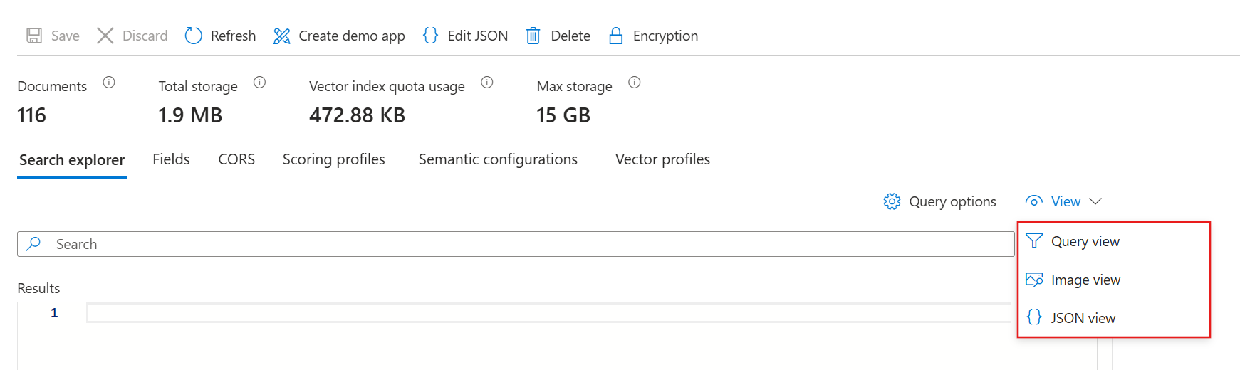 This quickstart uses an existing index to demonstrate Search explorer.
