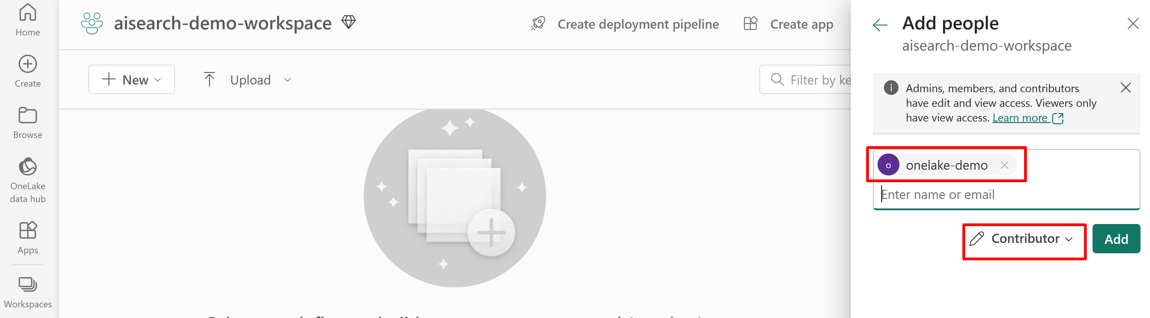 Grant permission for search service access to the Fabric workspace. The search service makes the connection on behalf of the indexer.