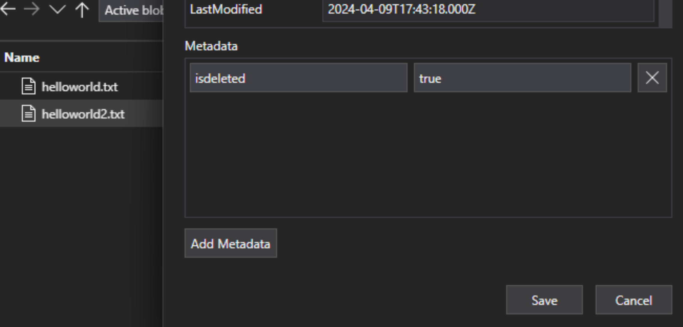 In the lakehouse file, add a custom metadata key-value pair to the file to indicate the file is flagged for deletion. For example, you could name the property "IsDeleted", set to false. When you want to delete the file, change it to true.