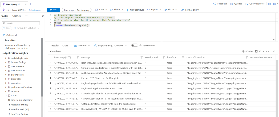 Concept matching between Azure Spring Apps and Application Insights