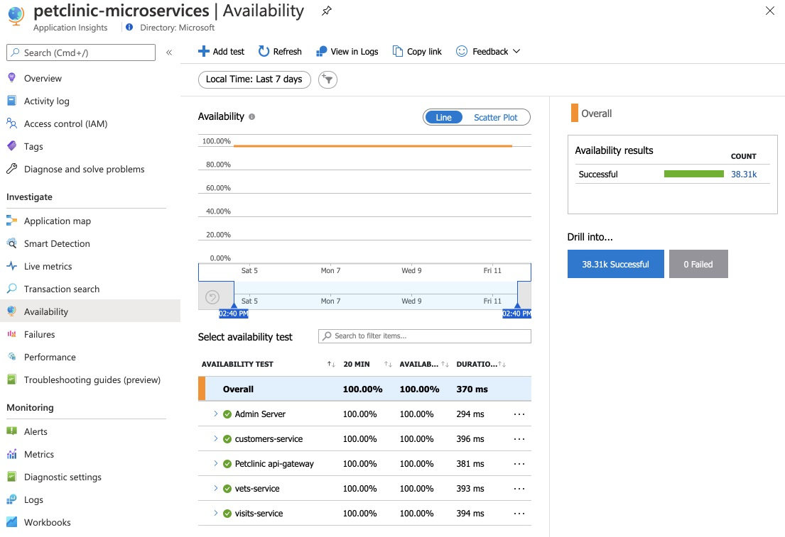 Screenshot of the Azure portal that shows the Application Insights Availability page.