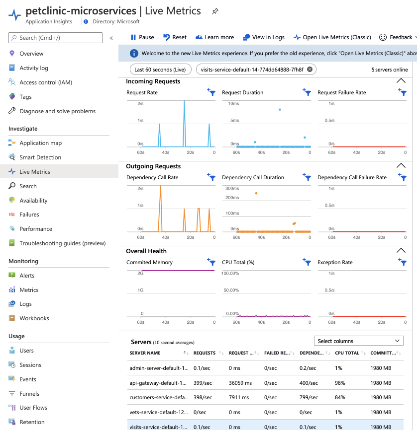 * Live Metrics/Service Name