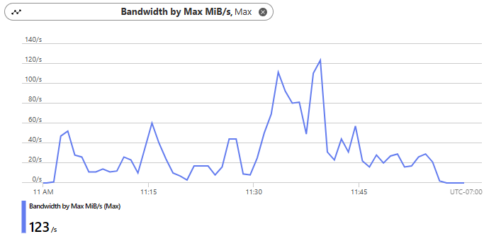 Compared against the Bandwidth by Max MiB/s, we achieved 123 MiB/s at peak.