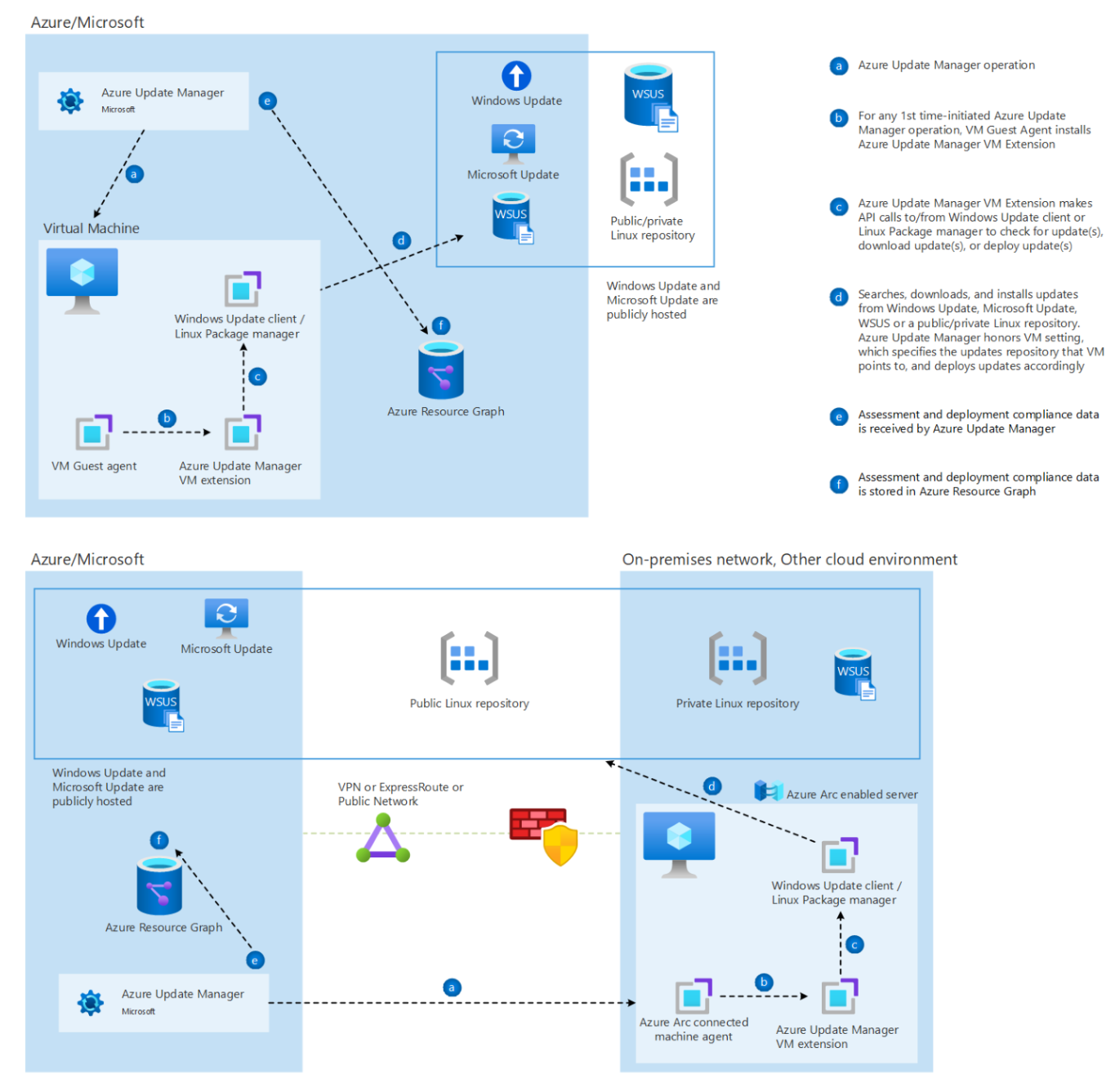Update Manager assesses and applies updates to all Azure machines and Azure Arc-enabled servers for both Windows and Linux.