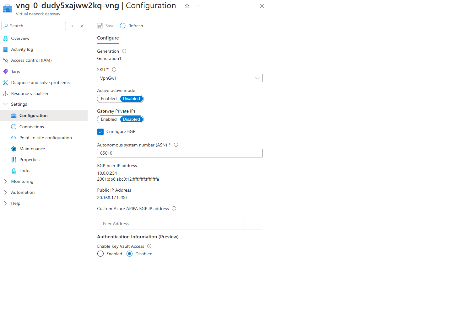 - IPv6 support is available for new gateway deployments using VpnGw1-5 and VpnGw1AZ-5AZ SKUs.