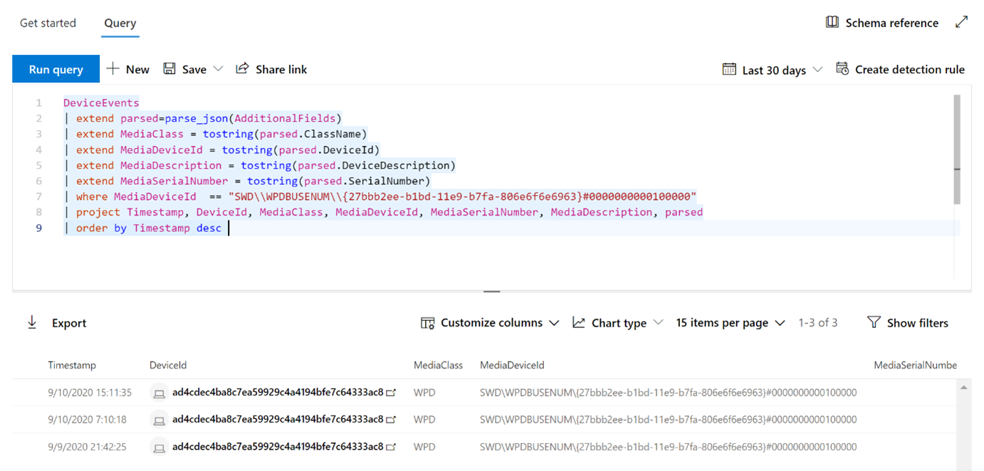 | extend MediaDeviceId = tostring(parsed.DeviceId)