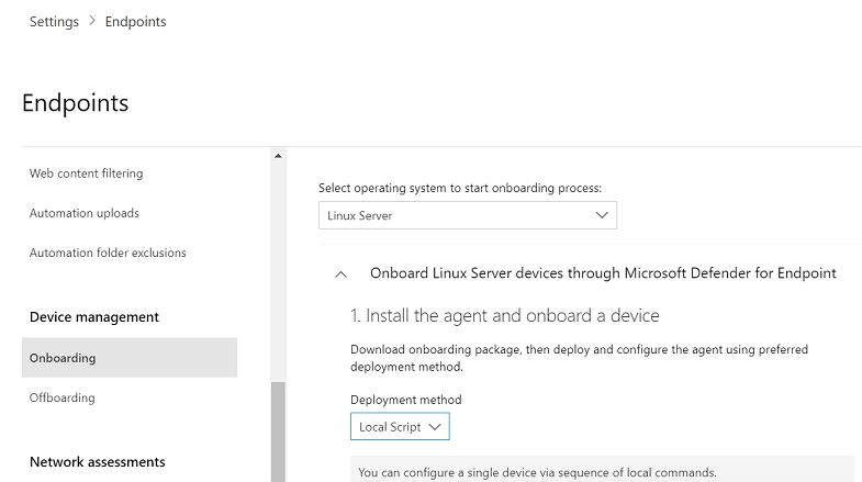 In the Microsoft Defender portal, go to Settings > Endpoints > Device management > Onboarding.