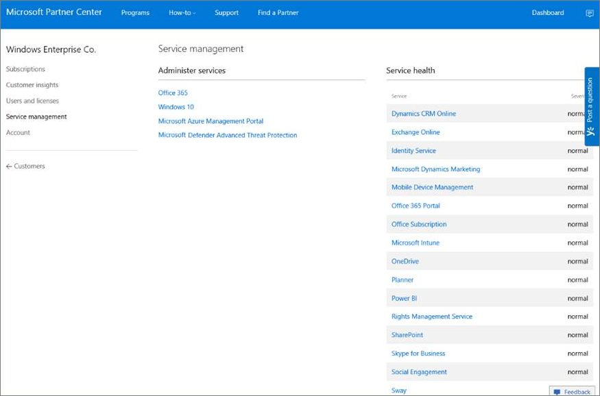 From the Partner portal, select Administer services > Office 365.
