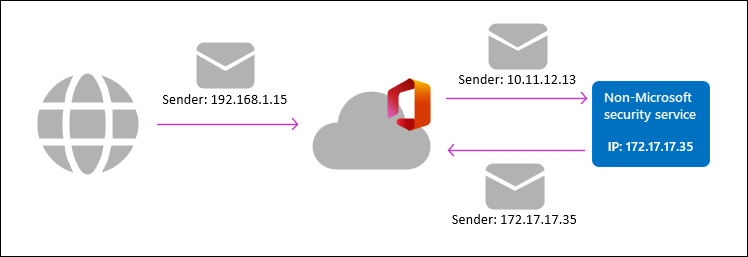 How the non-Microsoft service scans and acts on email messages. Typically, non-Microsoft security services suggest the following three integration options, and not all of these options are equally supportable by Microsoft at this time.