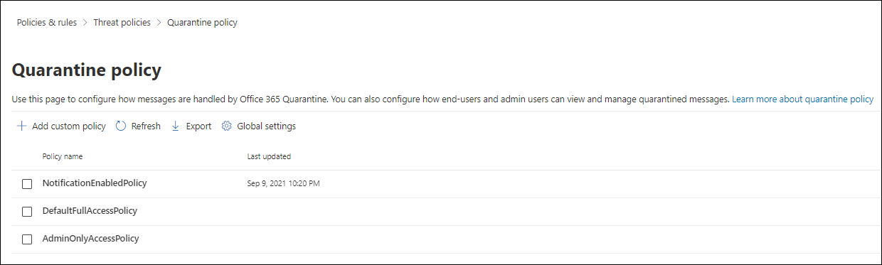 Step 1: Create quarantine policies in the Microsoft Defender portal