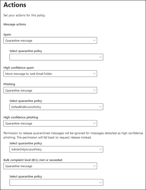 | High confidence phishing (HighConfidencePhishAction) | Yes (HighConfidencePhishQuarantineTag) |