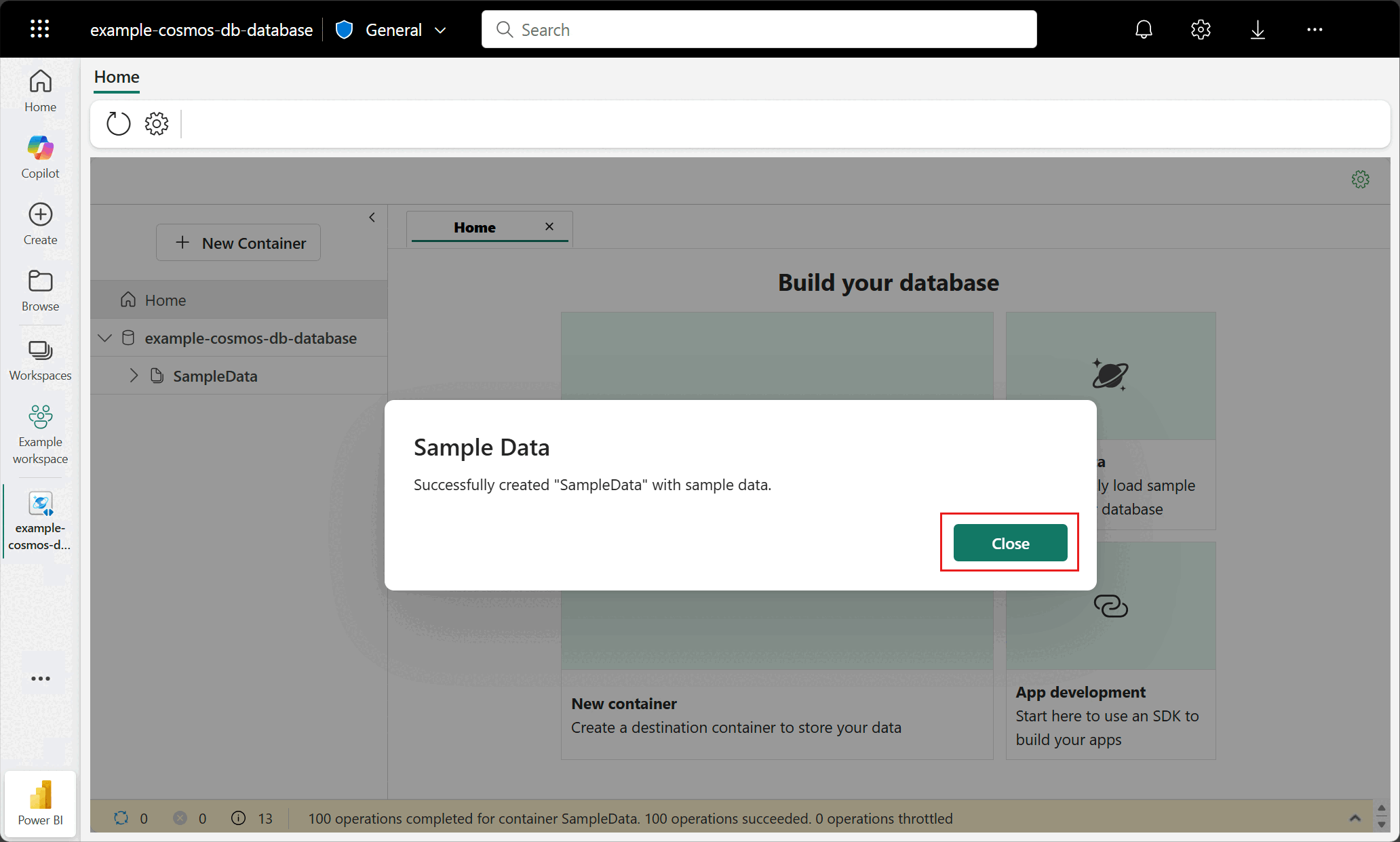 Finally, perform a NoSQL query to test the sample data in the SampleData container that was created.