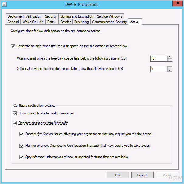 The Configuration Manager console notifies you for specific events that occur. You can configure some of the event notifications for your Configuration Manager sites.