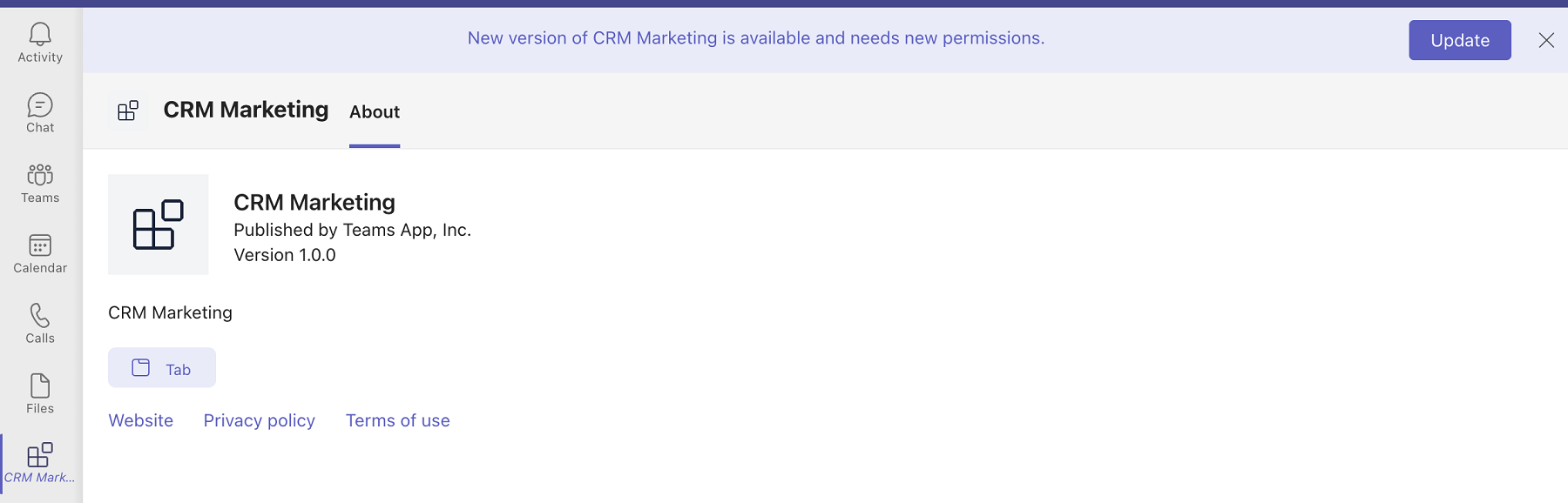 - When a new app version is available in Teams store, allow users to upgrade to the new version.